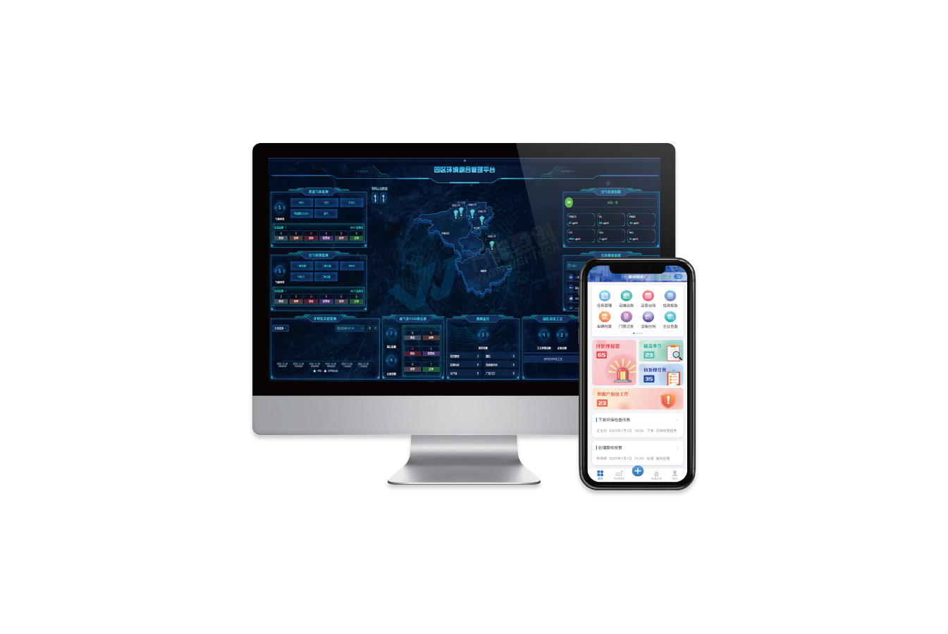 统通过用户角色配置,可分为管理端、企业端,园企联动,提升环境管理效率、提升环境综合管理水平;