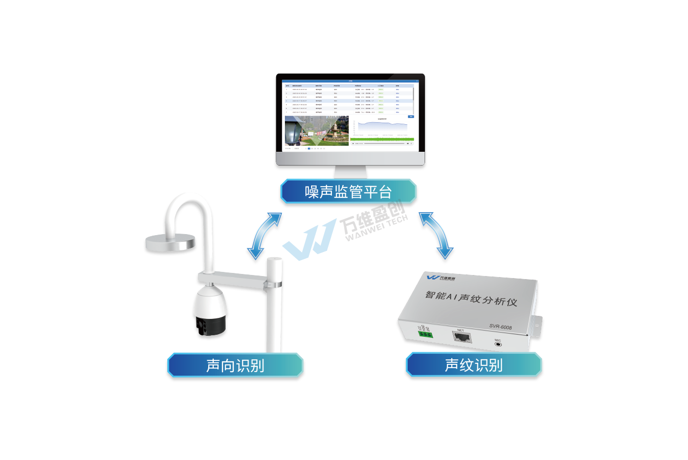 在环境噪声监测时进行声纹实时分析,判断声源类型,从而对超标数据进行数据标记,并上报平台,为噪声数据审核提供有效审核依据。适用于功能区噪声监测、交通噪声监测、建筑施工噪声监测、工业企业噪声监测、社会生活噪声监测等场景。